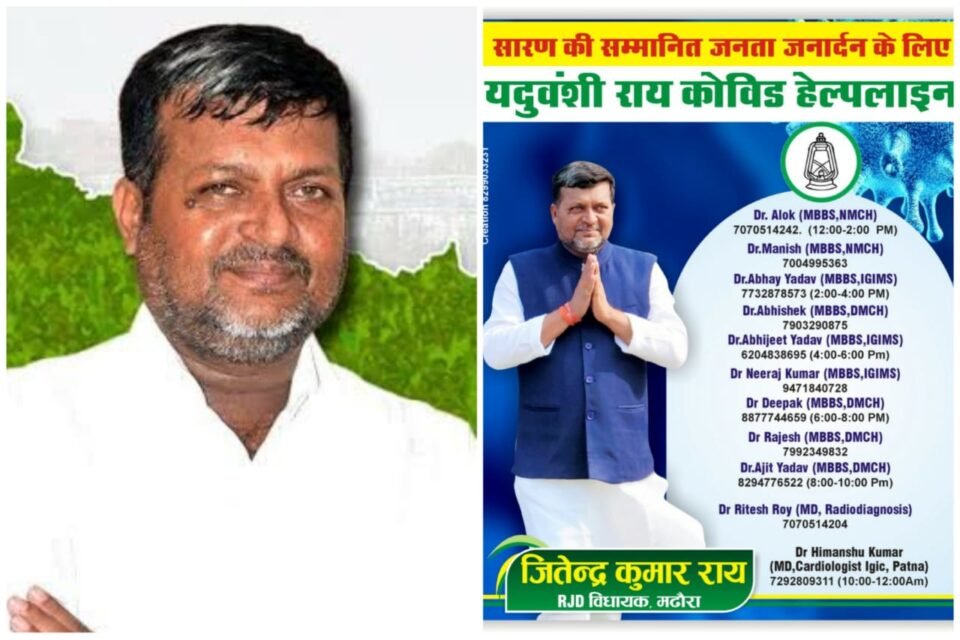 बिहार में कोरोना वायरस के संक्रमण को बढ़ता देख मढौरा से राष्ट्रीय जनता दल (राजद) विधायक जितेन्द्र कुमार राय ने सारण के कोरोना वायरस से संक्रमित लोगों का मुफ्त में इलाज़ करने निर्णय लिया है।