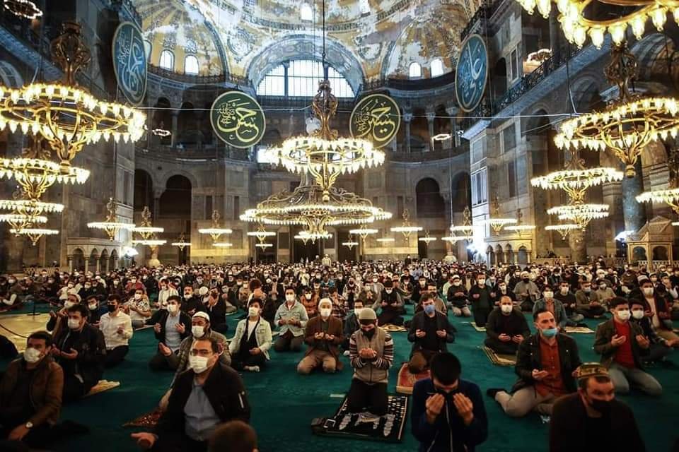 87 साल के अंतराल के बाद गुरुवार को इस्तांबुल की प्रतिष्ठित हागिया सोफिया मस्जिद में ईद की नमाज़ अदा की गई।