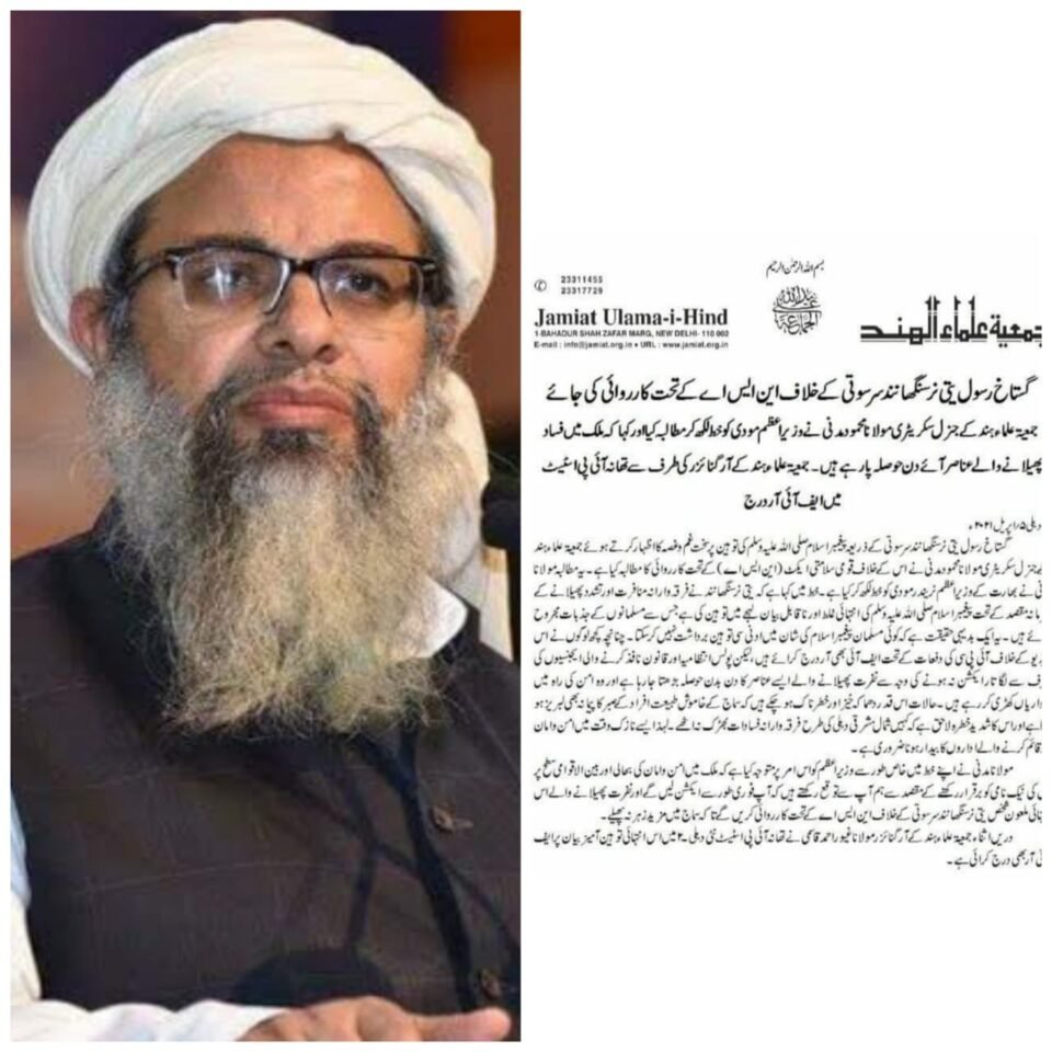 जमीयत उलमा ए हिन्द ने पैगंबर मुहम्मद साहब के बारे में अपशब्द कहने वाले यति नरसिंहानंद पर नेशनल सिक्योरिटी एक्ट (एनएसए) के तहत कार्यवाही करने की मांग की है।