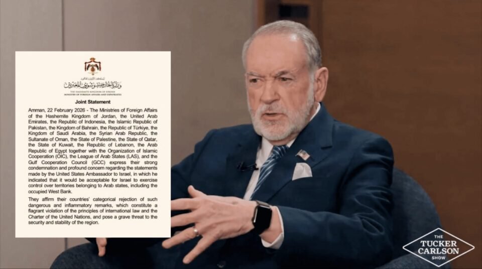 सऊदी अरब के विदेश मंत्रालय के नेतृत्व में अरब और मुस्लिम-बहुल देशों के एक गठबंधन ने इज़राइल में अमेरिकी राजदूत माइक हकाबी की हालिया टिप्पणियों की कड़ी निंदा की है। इन देशों ने एक संयुक्त बयान जारी कर कहा कि राजदूत का बयान खतरनाक, भड़काऊ और अंतरराष्ट्रीय कानून के विरुद्ध है।