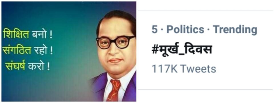 एक तरफ प्रधानमंत्री नरेंद्र मोदी से लेकर ग्रह मंत्री अमित शाह और भाजपा के तमाम बड़े नेता अम्बेडकर जयंती मना रहा है वहीं दूसरी और भाजपा IT सेल इस दिन को ‘मूर्ख दिवस’ के रूप में मना रहा है। ट्विटर पर आज का ये ट्रेंड भाजपा और आरएसएस के संविधान, आरक्षण और दलित विरोधी चेहरे का पर्दाफाश कर रहा है।