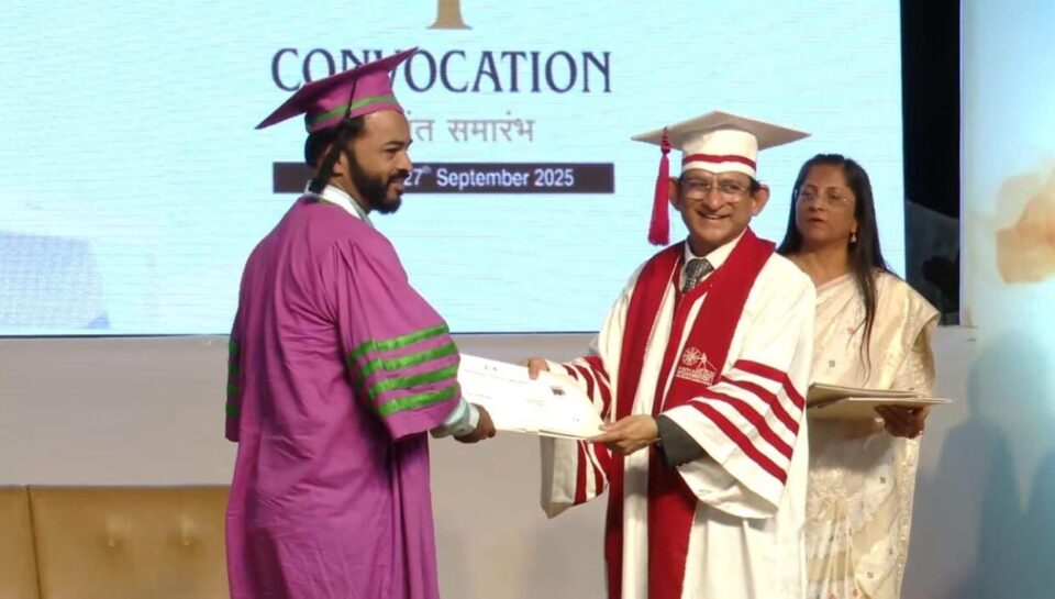 विश्वविद्यालय के कुलपति प्रो. डॉ. विलास सकपाल ने औपचारिक दीक्षांत समारोह में उन्हें डॉक्टर ऑफ फिलॉसफी (PhD) की उपाधि दी।