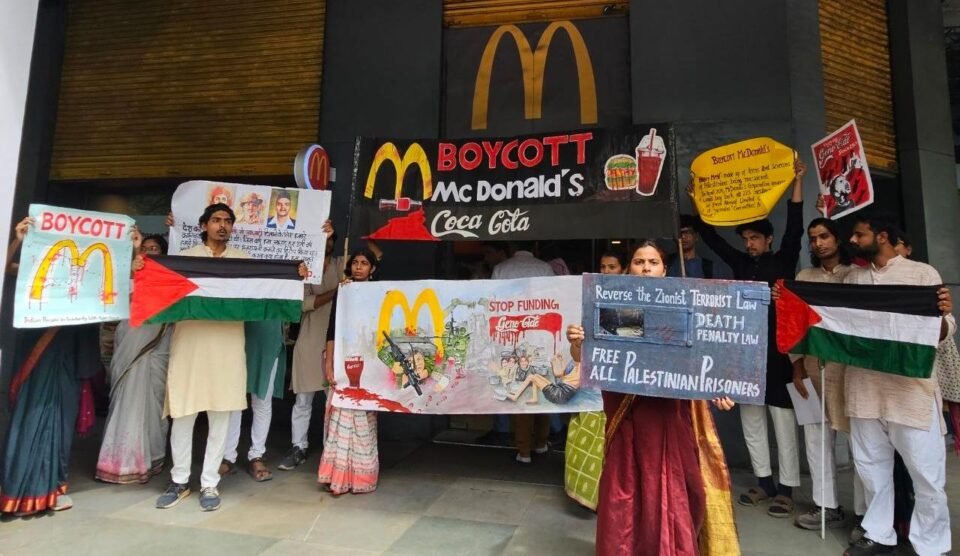 राजधानी के जनपथ इलाके में स्थित McDonald’s आउटलेट के बाहर Indian People in Solidarity with Palestine (IPSP) के बैनर तले कार्यकर्ताओं ने शुक्रवार को एक फ्लैश प्रोटेस्ट आयोजित किया। यह प्रदर्शन वैश्विक Boycott, Divestment and Sanctions (BDS) अभियान के तहत किया गया, जिसमें फिलिस्तीन के समर्थन में आवाज उठाई गई।